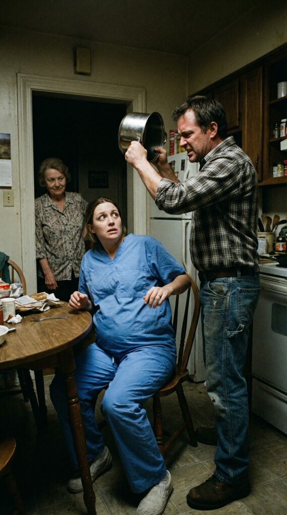 He grabs the rice pot off the counter and slams it into my head like I’m an object he can move out of his way. The world tilts. A metallic taste floods my mouth. My ears ring so loud it feels like the house is screaming instead of me. I blink, and the kitchen tiles swim.