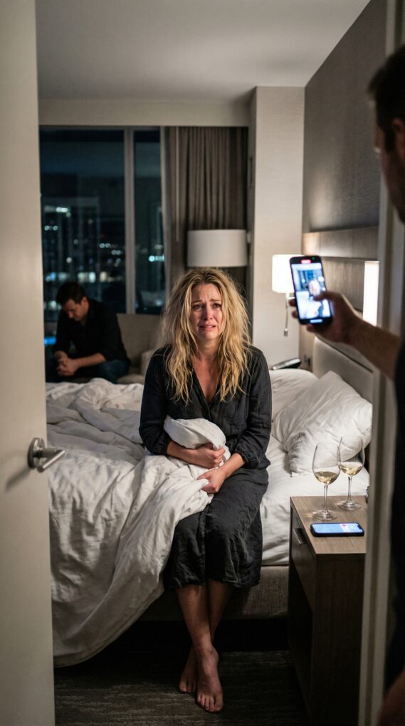 Now Mark paced the hotel room as if he owned it. The man beside me—late thirties, pale and frantic—kept saying, “I don’t know you. I woke up like this too.” Mark ignored him and aimed his phone at my face. “Say it again,” he demanded. “Tell the camera you cheated.”
