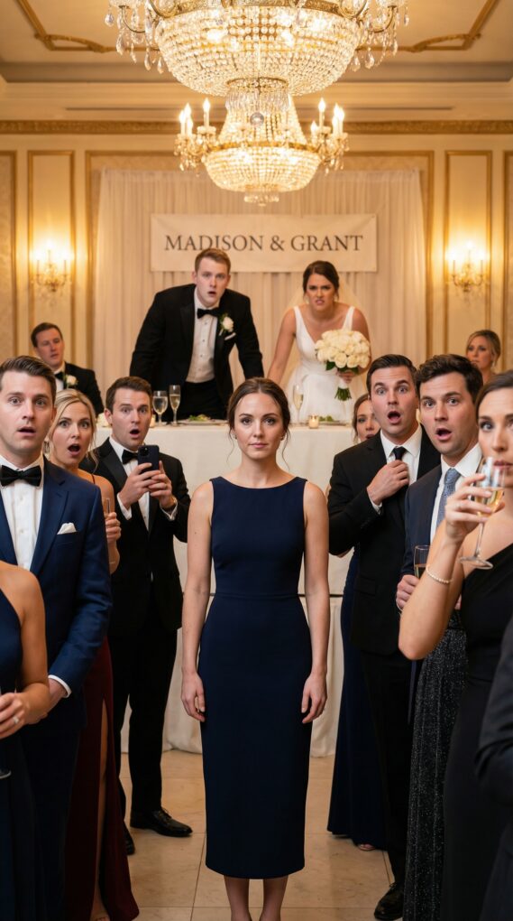 Madison stormed toward the side room, veil bouncing with every angry step. Grant followed, tugging at his collar, his confidence unraveling thread by thread. The guests didn’t know whether to sip their drinks or pretend they hadn’t just witnessed a social earthquake.