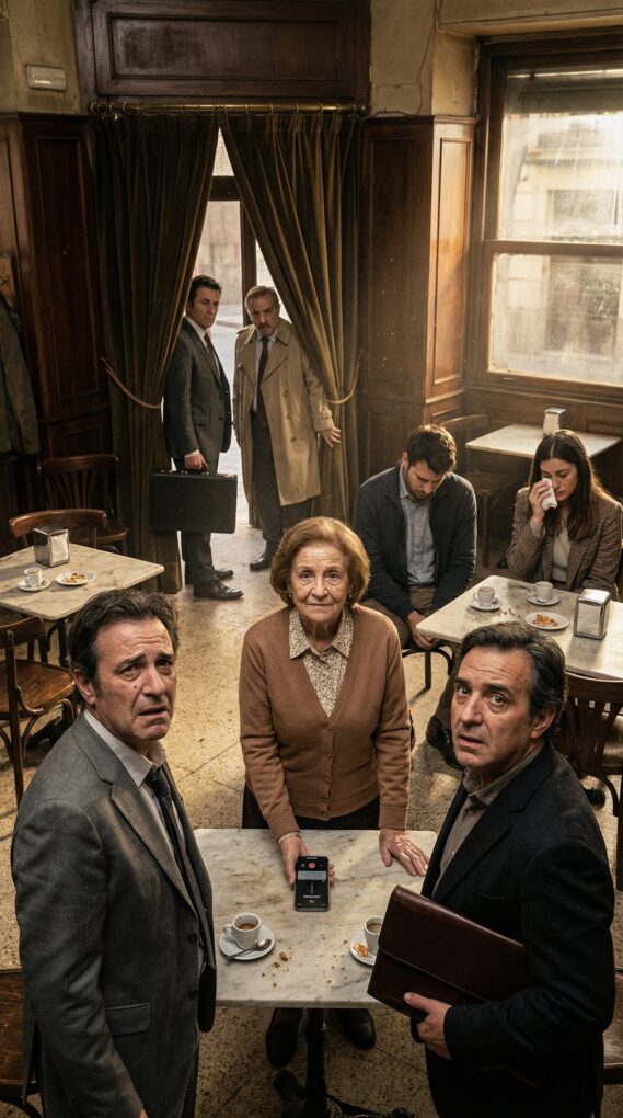 Dos días después, Lucía me llamó con una voz dulce que no le conocía. “¿Tomamos un café y hablamos? Un encuentro de tregua. Sin gritos, por favor”. Acepté porque todavía soy madre, y las madres hacemos locuras por un hilo de paz. Llegué al bar del pueblo, un sitio de mesas de mármol y cucharillas golpeando tazas. Lucía me esperaba en un reservado al fondo. Cuando corrí la cortina, se me congeló el gesto: allí estaba el director de la sucursal, el señor Molina, traje gris y sonrisa corta, y a su lado un agente inmobiliario, Raúl, con carpeta de piel.