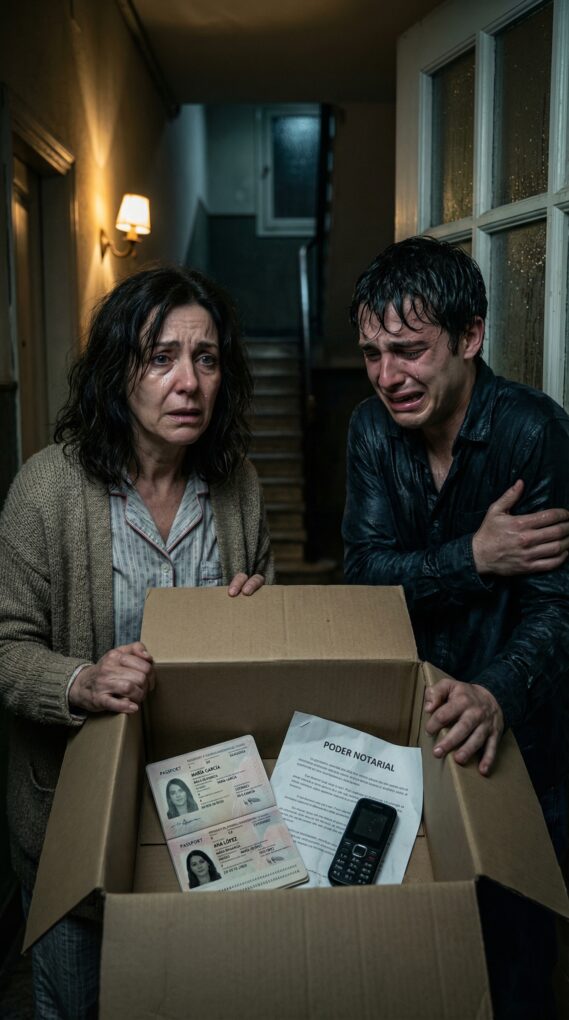 Sentí un vacío helado. “¿Cómo que lo sabía?” Javier levantó la caja con manos temblorosas. “Porque esta es la prueba. Y porque yo ya no puedo cargar con esto”. La abrí allí mismo. Dentro había un móvil quemador, dos pasaportes con fotos de Javier y nombres distintos, una copia del borrador de un poder notarial y, encima, una hoja con la firma de Clara. Su firma. Nítida. Real.