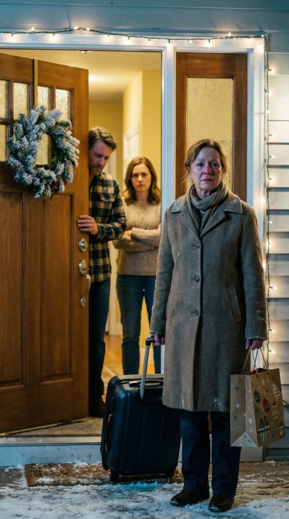 PART 3 A week later, after Christmas had passed, Ethan drove to my home. He stood on my doorstep the way I had stood on his. His eyes were red, exhausted. “Mom,” he said softly, “I’m sorry.” I let him inside but didn’t rush to comfort him. He needed to feel the weight of what happened. He sat at my kitchen table, staring at his hands. “I should have defended you,” he admitted. “I don’t know why I froze.” I nodded slowly. “Because it was easier to disappoint me than confront your wife.” He flinched, but he didn’t deny it. Claire didn’t come with him. That told me everything. Ethan swallowed. “The kids miss you. I miss you.” My voice was steady. “Missing someone isn’t the same as valuing them.” He looked up, tears forming. “What do I do?” I leaned forward. “You stop treating your mother like a guest who can be turned away. You set boundaries in your own home.” In the months that followed, things changed slowly. Ethan started visiting alone with the children. Claire remained distant, but she could no longer pretend I didn’t exist. I resumed contributions to the college fund—not because money was leverage, but because respect had finally entered the conversation. I didn’t want revenge. I wanted recognition. Family isn’t just who shares your last name. It’s who opens the door. If there’s one lesson I learned, it’s that silence in the face of disrespect is a choice—and it has consequences. I still love my son. But I love myself enough now to never stand on a porch feeling unwanted again. If you were in my position, what would you have done? Would you have knocked again… or walked away like I did? Share your thoughts in the comments, because so many people quietly experience this kind of heartbreak, and talking about it might help someone else find the courage to choose dignity.