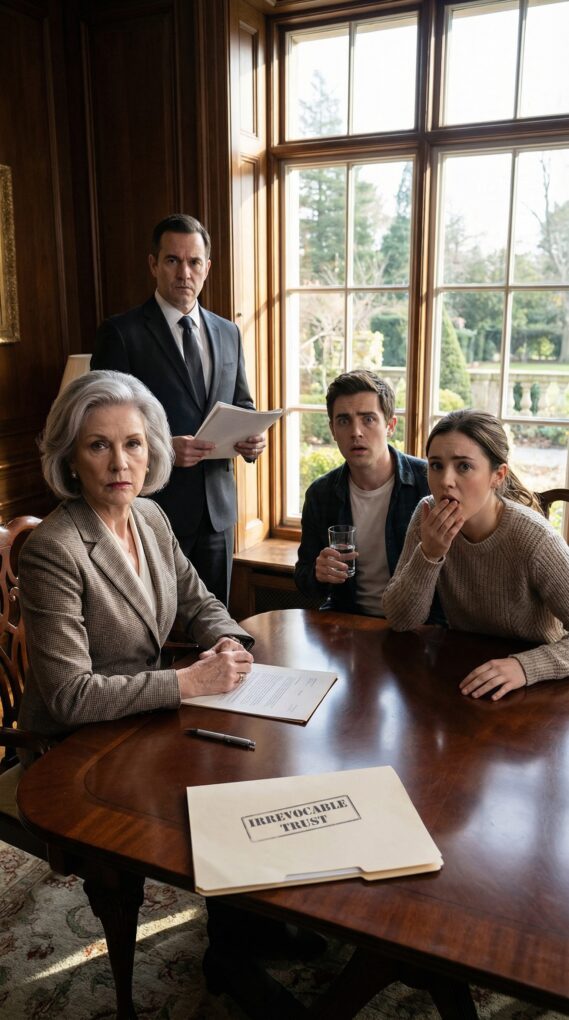 By Wednesday, every account, every investment, and my house had been transferred into an irrevocable trust. Carefully structured. Untouchable. Conditions attached. Responsible use only. No lump sums. No reckless spending.