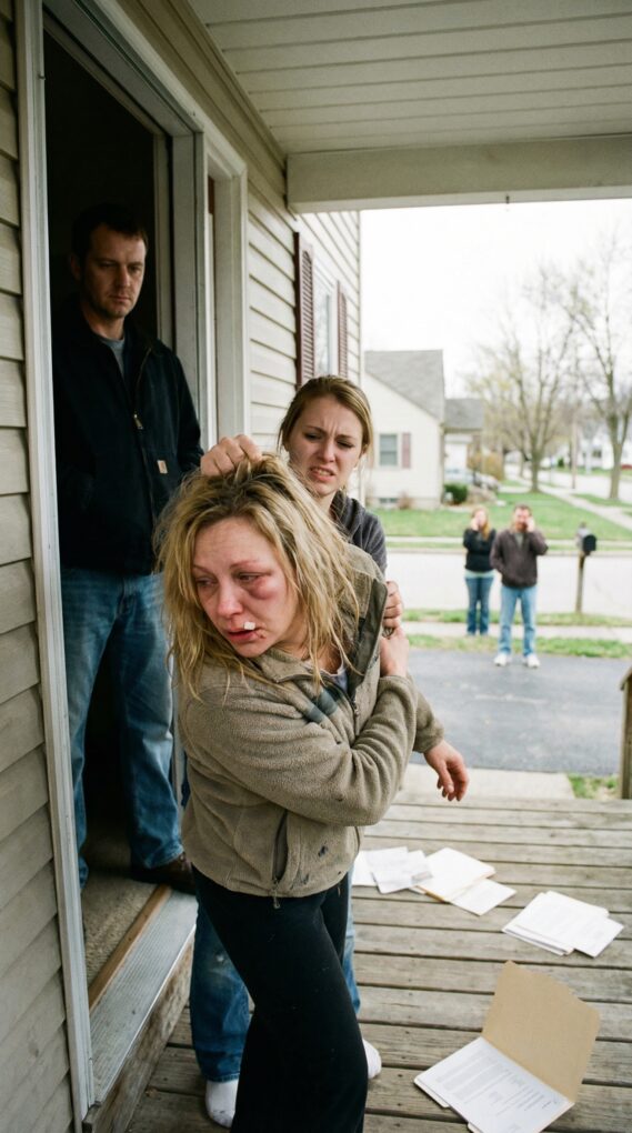I grabbed the porch railing and tried to stand, legs trembling. Megan hovered in the doorway, eyes flicking between me and Tyler, and the betrayal hit harder than the punch: she still wasn’t coming to me.