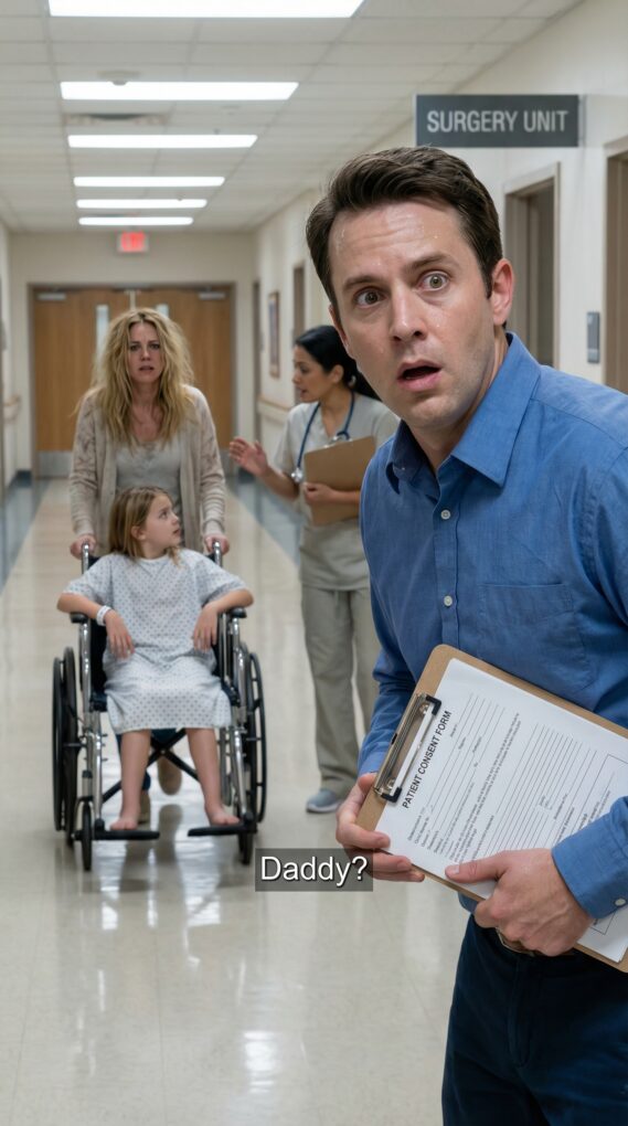 The nurse lowered her voice. “The surgeon needs the father in Pediatrics. They’re moving Madison to pre-op—now.”For a second I couldn’t move. “Pre-op?” I repeated. “What surgery? What’s wrong with her?”