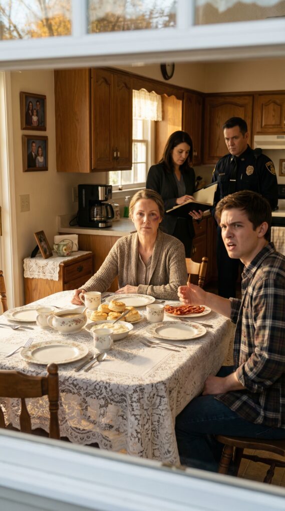Ethan didn’t cry until the front door opened. Then he looked back at the table—the biscuits, the good china, the lace cloth—and for the first time, he looked like he understood the cost of what he’d turned our home into.