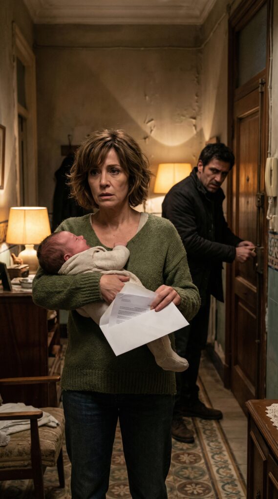 Javier dio un paso más. Leo lloró, molesto por el cambio de pañal. Yo lo levanté y lo pegué a mi pecho, como un escudo. El llanto me dio una excusa para moverme: caminé hacia el sofá, lejos del cambiador, lejos de donde el sobre había estado escondido.