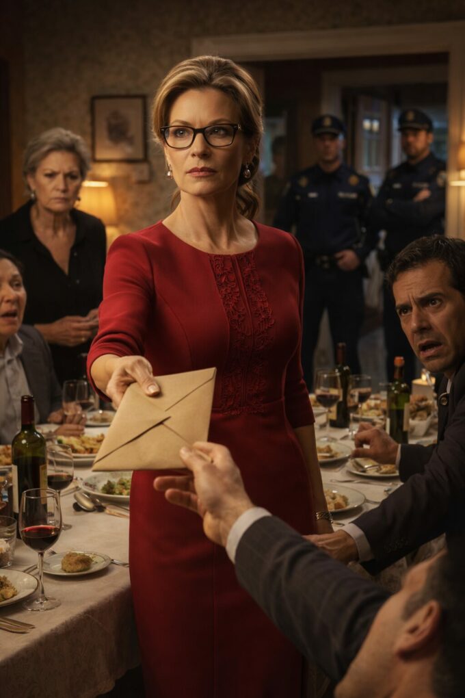 Diego tragó saliva. “Mamá… ¿qué hiciste?”. Yo saqué el sobre sellado y lo dejé sobre la mesa, delante de todos. “Ahora lo vas a entender”, dije. Javier estiró el brazo para arrebatármelo. Yo lo cubrí con la palma y, sin levantar la voz, añadí: “Si lo tocas, se envía automáticamente una copia a mi abogada… y a la policía”.