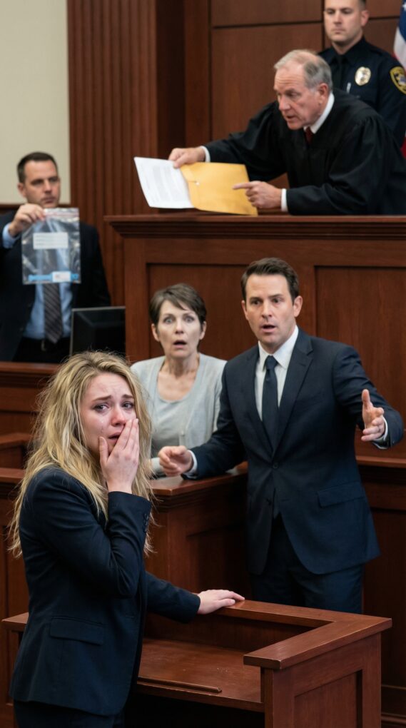 She didn’t answer right away. She looked at the bailiff, the judge, the sealed documents—like a trapped animal scanning for an exit.