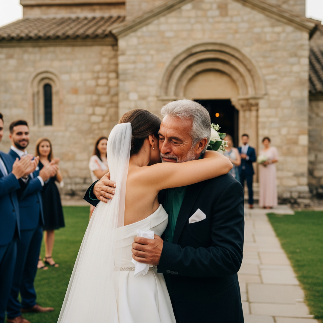 It was crisp and golden that day—sunlight cutting through the fall trees like honey. Emily stood outside the church, veil tucked gently into her dark curls, heart pounding not from nerves, but from joy.