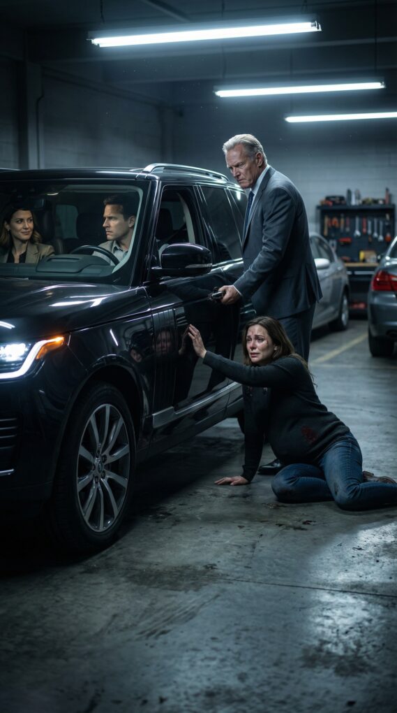 My belly scraped the cold tiles as I dragged myself across the garage floor, the chill biting straight through my thin sweater. I could hear the engine idling, steady and cruel, like a heartbeat that wasn’t mine. The overhead light buzzed, flickering just enough to make everything feel unreal—my shaking hands, the smear of dust on my palms, the taste of metal on my tongue.