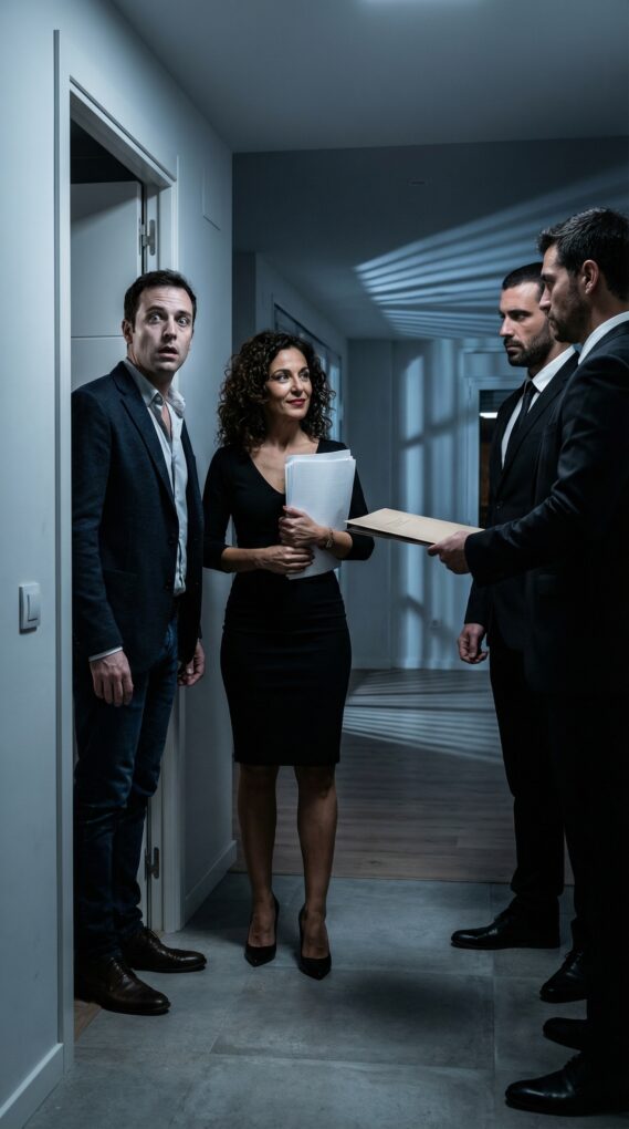 El viernes, Javier insistió en “otra salida familiar” para “relajarnos”. Acepté. En el coche, él canturreaba, seguro de su plan. Yo miraba por la ventana, contando mentalmente cada minuto. Al regresar, ya de noche, la cerradura giró. La puerta crujió. Javier dio un paso… y se quedó clavado. La casa estaba completamente vacía. Y en el umbral, dos hombres de negro, serios, le cortaron el paso. Uno mostró una carpeta.