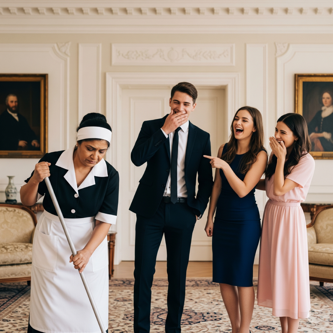 Every morning at 6 a.m. sharp, Maria stepped into the grand halls of the Wexley Estate—her hair tightly pinned under a white headband, her black uniform neatly pressed. She moved quietly, methodically, polishing chandeliers, scrubbing marble floors, dusting portraits of long-dead aristocrats who glared down at her like she didn’t belong.