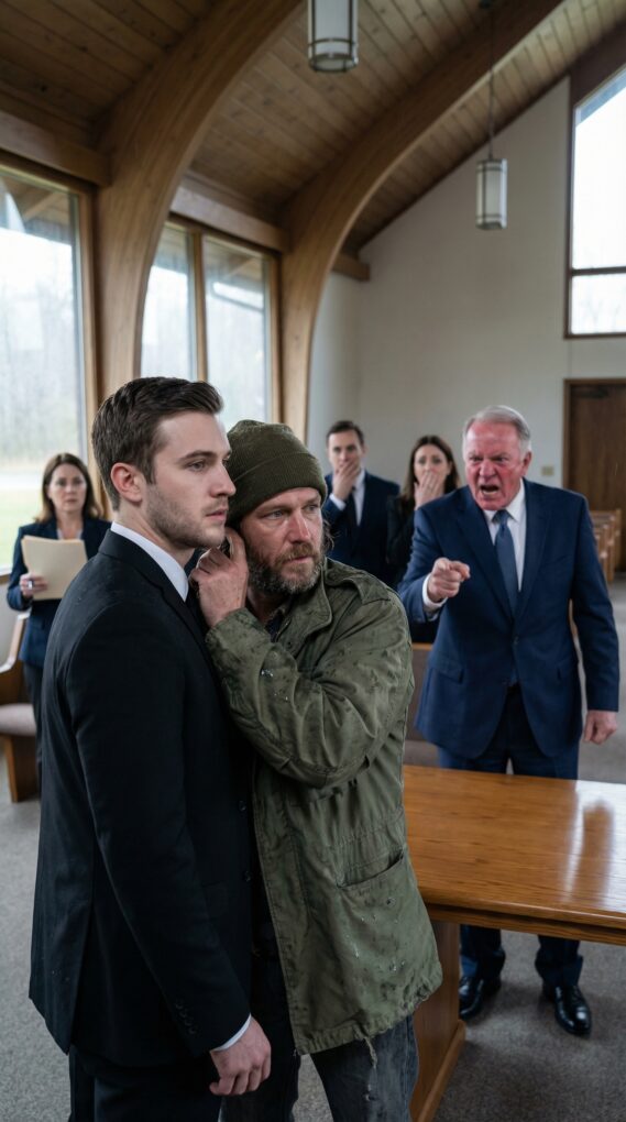 They stared the second the homeless man shuffled into Grandpa Walter’s funeral, his coat hanging off one shoulder, boots soaked from the rain. The chapel smelled like lilies and cologne, and every head turned as if he’d set off an alarm. I was standing near the guest book when Dad’s jaw tightened so hard I thought a tooth might crack.