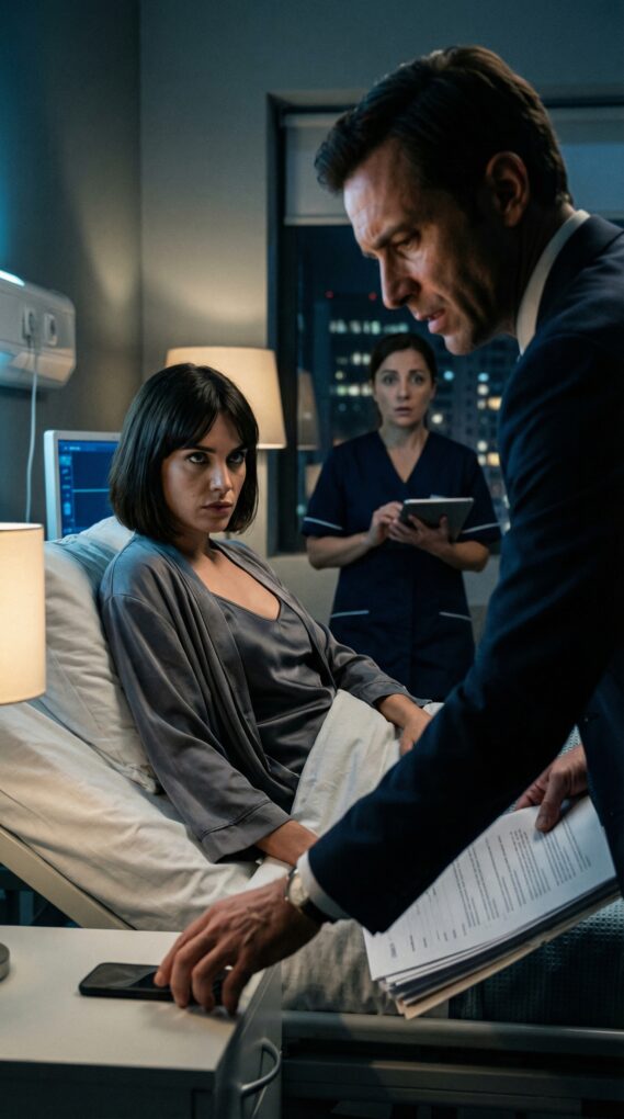 Yo levanté el mío con manos temblorosas y pulsé altavoz. “María, no cortes”, dije. Del otro lado, se oyó la voz de Javier, grabada en tiempo real desde la casa: “Sí, ponla nerviosa. Si firma hoy, mejor. Y a la limpiadora dile que no toque mi carpeta”. La habitación quedó en silencio, salvo por esa confesión. La Dra. Campos, que justo entraba con una trabajadora social, se quedó congelada. La trabajadora social dio un paso adelante. “Señor, salga de la habitación. Ahora”.