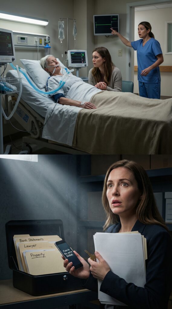 Inside was a single plastic bin and a thin black lockbox. I lifted the lid of the bin first and found neatly labeled folders: “Bank Statements,” “Property,” “Attorney,” “Medical.” Real-life paperwork. Boring, heavy, undeniable.