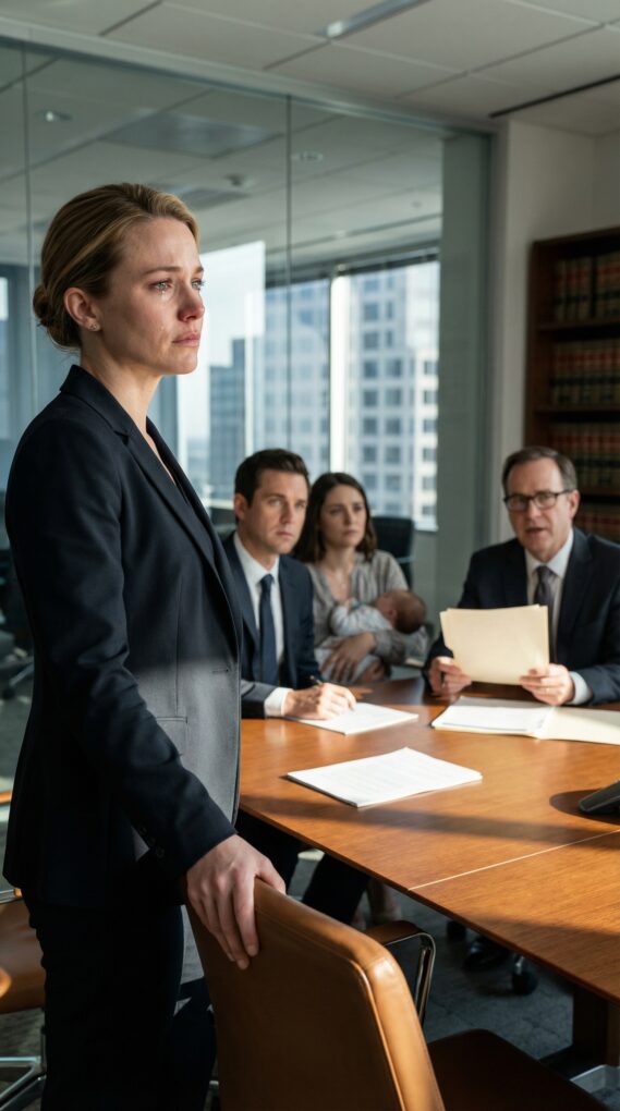 The receptionist pointed me toward the conference room. Through the glass, I saw Derek sitting upright, hands folded. Beside him sat a woman I recognized instantly—Samantha Price, the “consultant” he’d sworn was just a client. She wore a confident smile that didn’t belong at a will reading. In her arms was a newborn wrapped in a pale blue blanket.