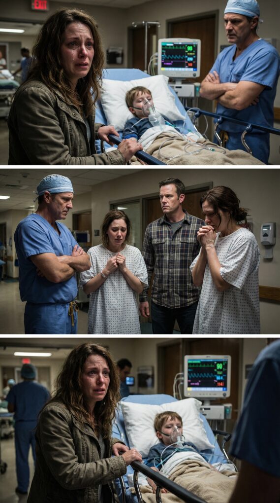 “Stop talking,” I snapped, pressing my cheek to Ethan’s forehead, counting seconds that felt like hours.