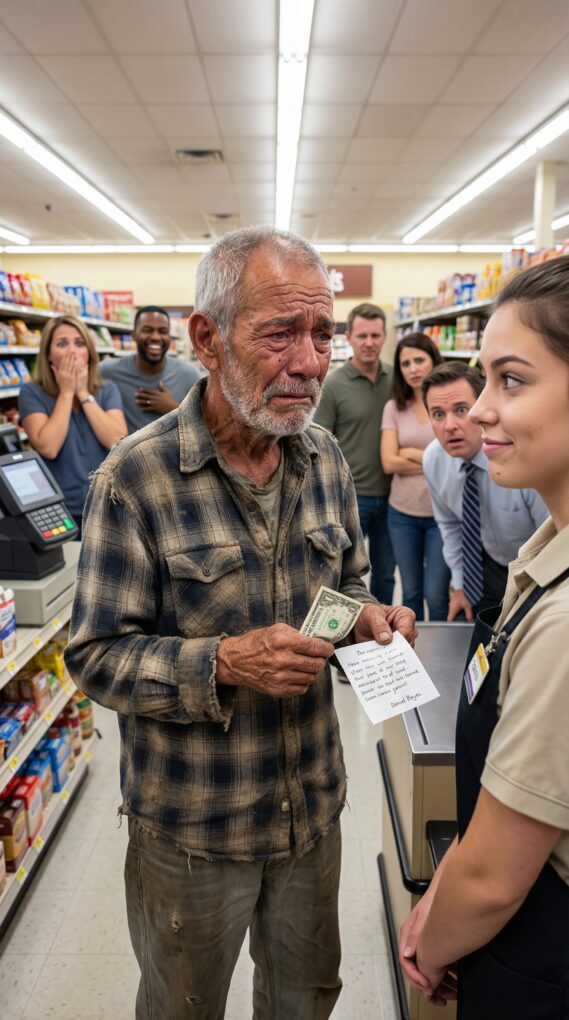 At a tiny grocery on the outskirts of Houston, I push the door open with my shoulder because my hands are shaking. My name is Samuel Reyes, and at eighty years old, pride is a luxury I can’t afford. My coat is threadbare, my shoes are split at the seams, and the only thing in my pocket is one wrinkled dollar. I’ve been hungry since yesterday morning, the kind of hunger that makes your vision narrow and your thoughts slow.