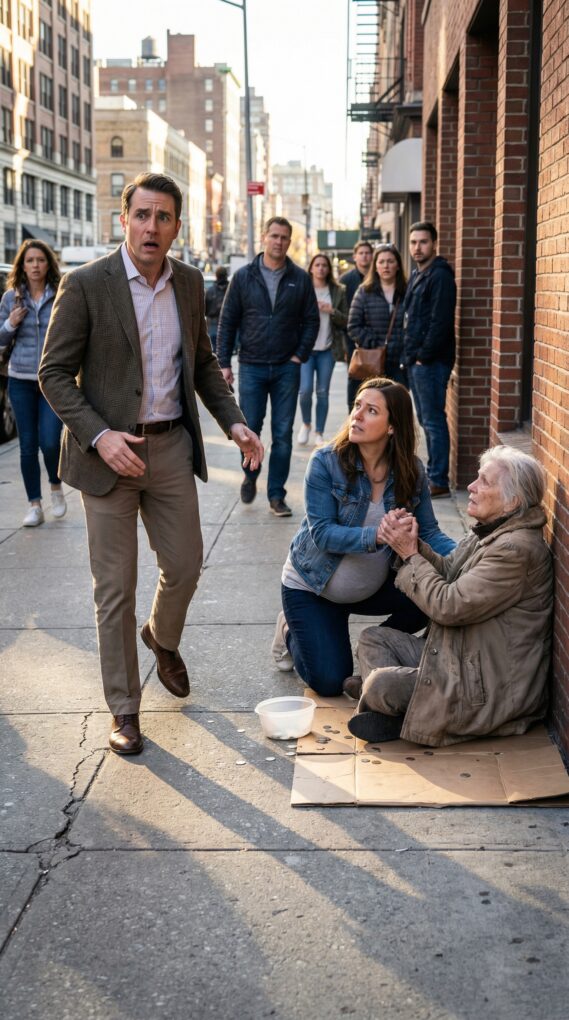 Claire stepped between us like a shield, one hand resting on her belly, the other reaching for my mother’s shaking fingers. She lowered herself to her knees without hesitation, right there on the sidewalk, as if the dirt didn’t matter and the stares didn’t exist.