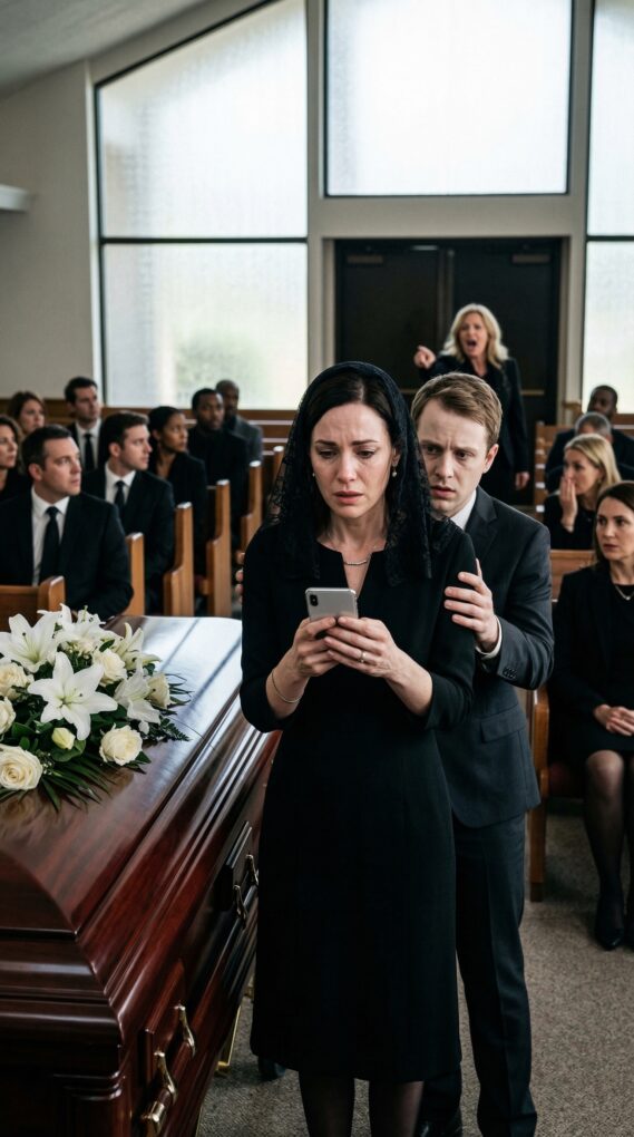 The moment Mark saw the woman at the back of the chapel, something in him changed. Up until then, he had been the composed one all morning—greeting guests, shaking hands, keeping tissues ready for Ryan’s mother. But now his confidence vanished. He walked toward me quickly, leaned down, and whispered, “Stay seated.”