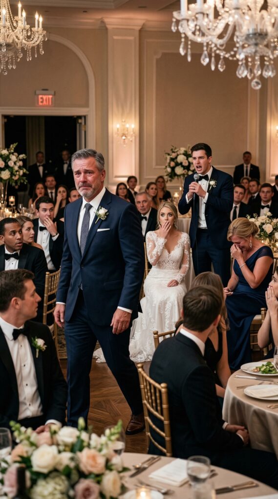 Ryan stood at the center of the dance floor, one hand gripping the microphone, the other clenched so tightly I could see the tendons in his wrist. Emily stared at him in confusion. Karen went pale. I stopped near the exit, half turned toward the room, wishing he would sit down and terrified that he wouldn’t.