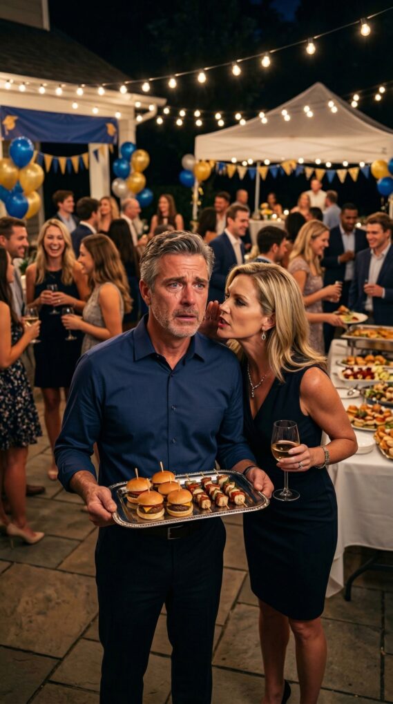 On the day of the party, I woke up early to finish setting things up. The smell of barbecue filled the backyard while music played softly through the speakers. By six thirty in the evening, guests began arriving. Emily looked happy and excited, taking photos with her friends near the decorated arch that said “Congratulations Emily!”
