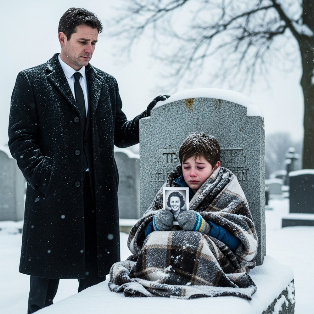 A week later, Daniel took Lucas back to the cemetery. This time, not in freezing silence, but with flowers, a scarf for the grave, and words to share.