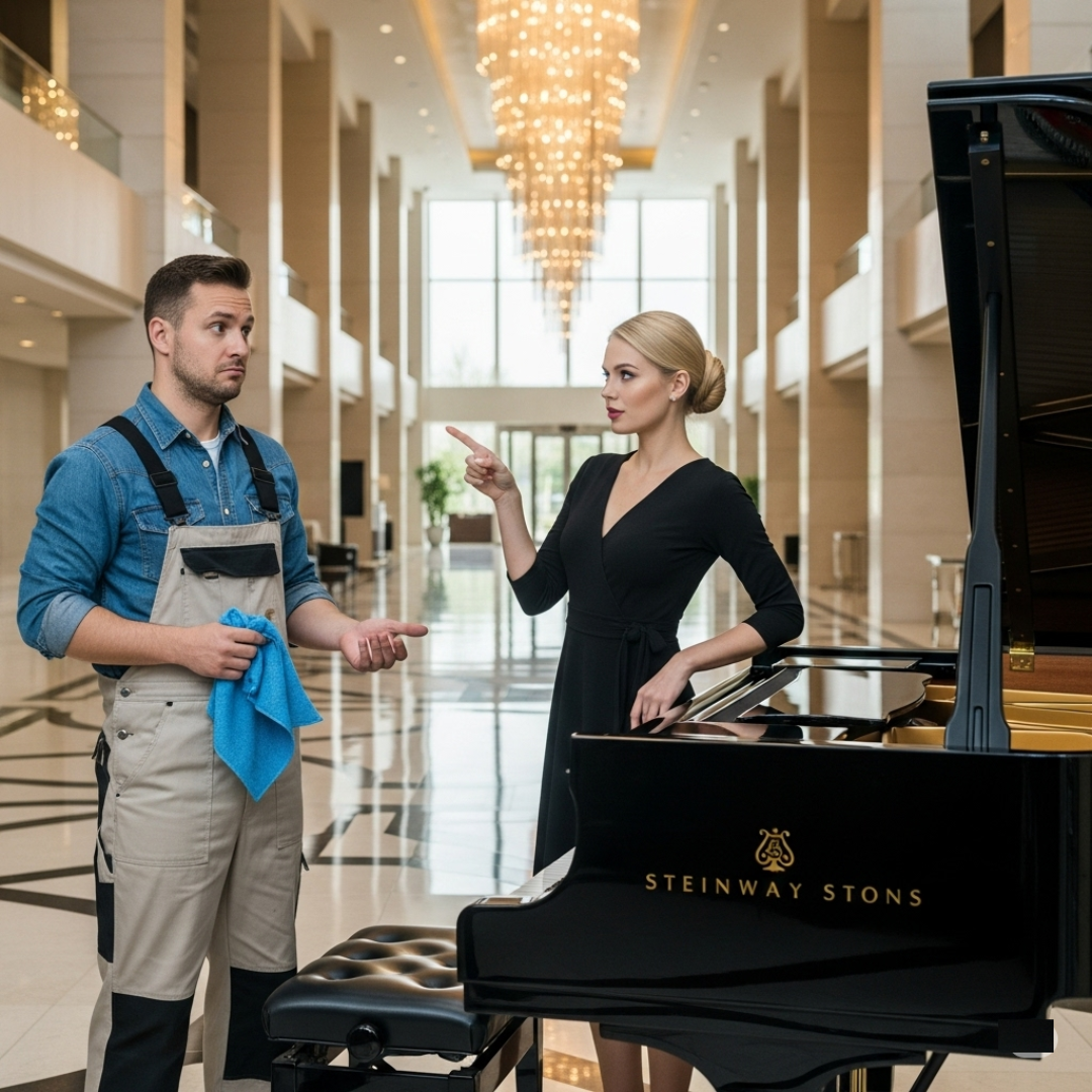 One late evening, during a surprise inspection of the property, she caught the janitor standing near the piano, softly humming to himself. Her heels clicked to a stop.