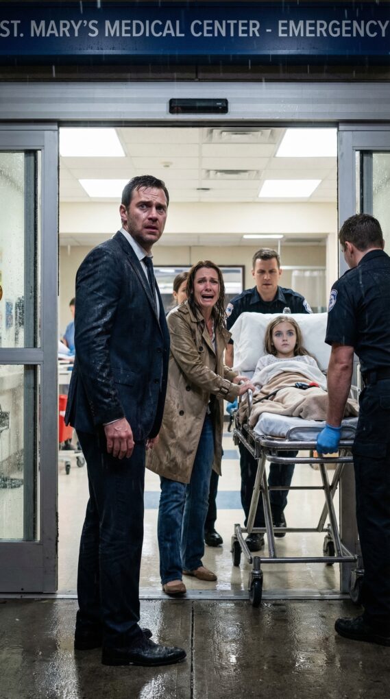 Now she stood ten feet away, pale and shaking, her dark hair plastered to her face, while doctors lifted the little girl onto a gurney. She reached for the child’s hand until the staff pushed her back. “Please,” she begged, her voice cracking. “Don’t let her be alone.”