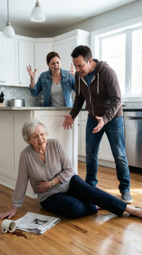 Then Melissa stepped closer, shouting that I was stealing from my own family. Daniel told me I was humiliating him. I said the money was mine to protect, especially from people who treated responsibility like punishment. That was when Melissa swept a stack of mail off my table and screamed that I was dead to them. Daniel moved fast after that. He grabbed my arm, shoved me backward, and I hit the edge of the counter before crashing to the floor. I heard the crack before I felt the pain. For one stunned second, the kitchen went silent. Then twenty minutes later, the front door opened.