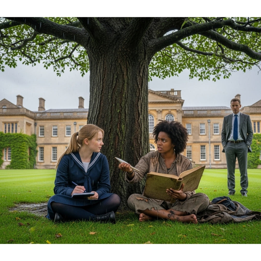 The next afternoon, he returned to the academy earlier than usual. Sure enough, under the oak tree, Emily was laughing as Maya animatedly explained something from the big leather-bound book.