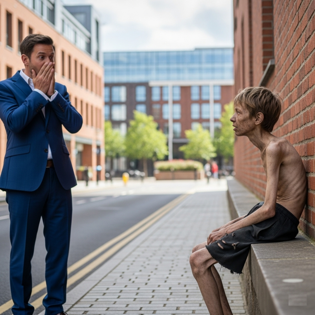 At first, it was the frail frame that drew his attention, a boy sitting on the cold edge of a brick wall, skin stretched thin over bone, clothes torn and hanging loose. But when the boy turned his head, Ethan’s breath caught in his throat.