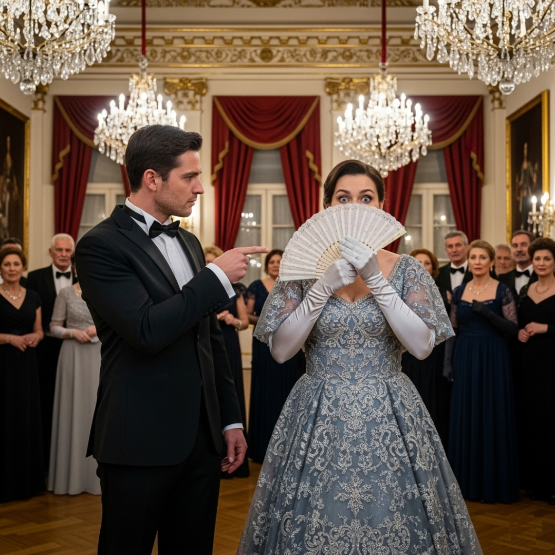 Her lips trembled, hidden behind the ornate lace fan she had brought more as an accessory than a necessity. But now, it was her only shield against the humiliation searing her cheeks.