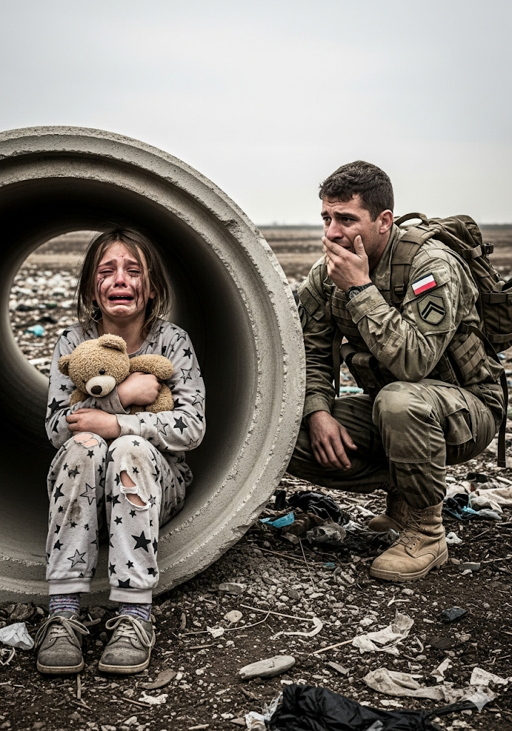 Daniel’s instinct told him to report her immediately, to call for orders. But as the girl looked up at him with wide, pleading eyes, he felt a surge of responsibility far stronger than protocol. He took off his jacket, draped it over her shaking shoulders, and whispered back: