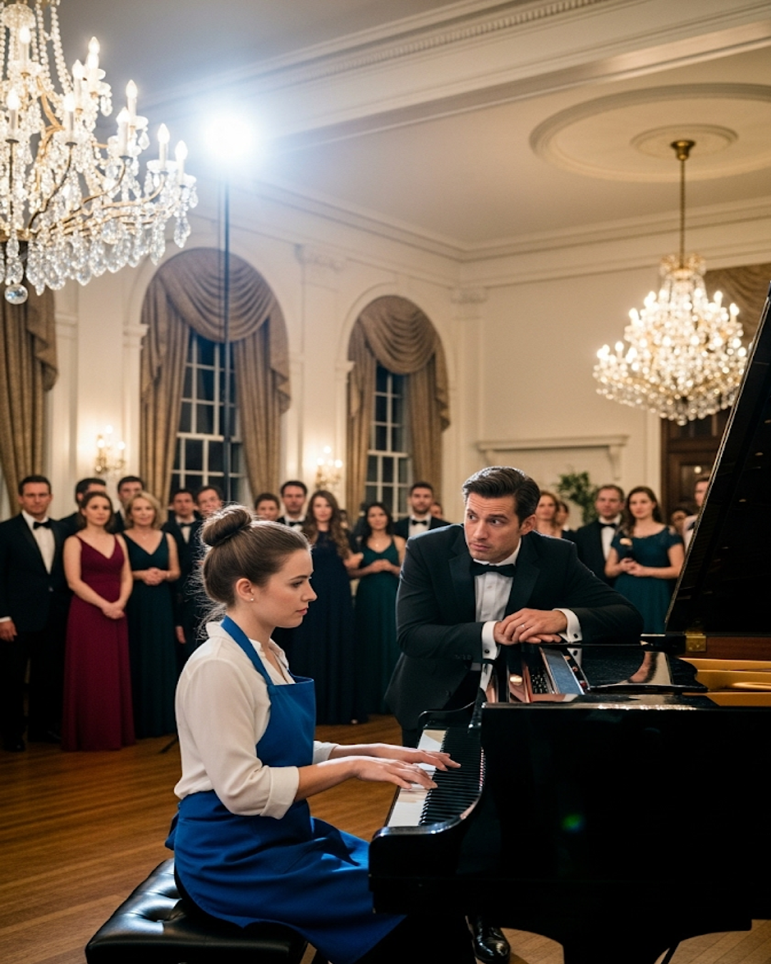 Elena walked out of the ballroom with her head held high, no longer just the maid in the blue apron. She was a pianist, an artist, and above all, a woman who had reclaimed her dignity in front of the world.