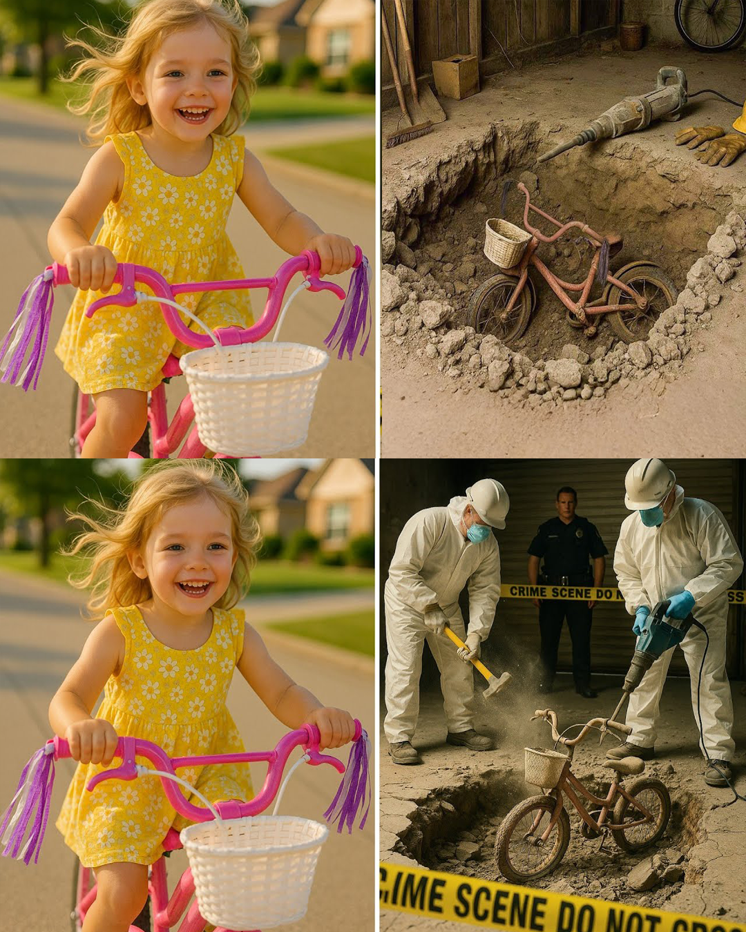 The crew gathered around the pit, stunned. The bike looked eerily familiar—too small, too personal, too haunting to be forgotten. One of the neighbors who stopped by during the renovation recognized it instantly.