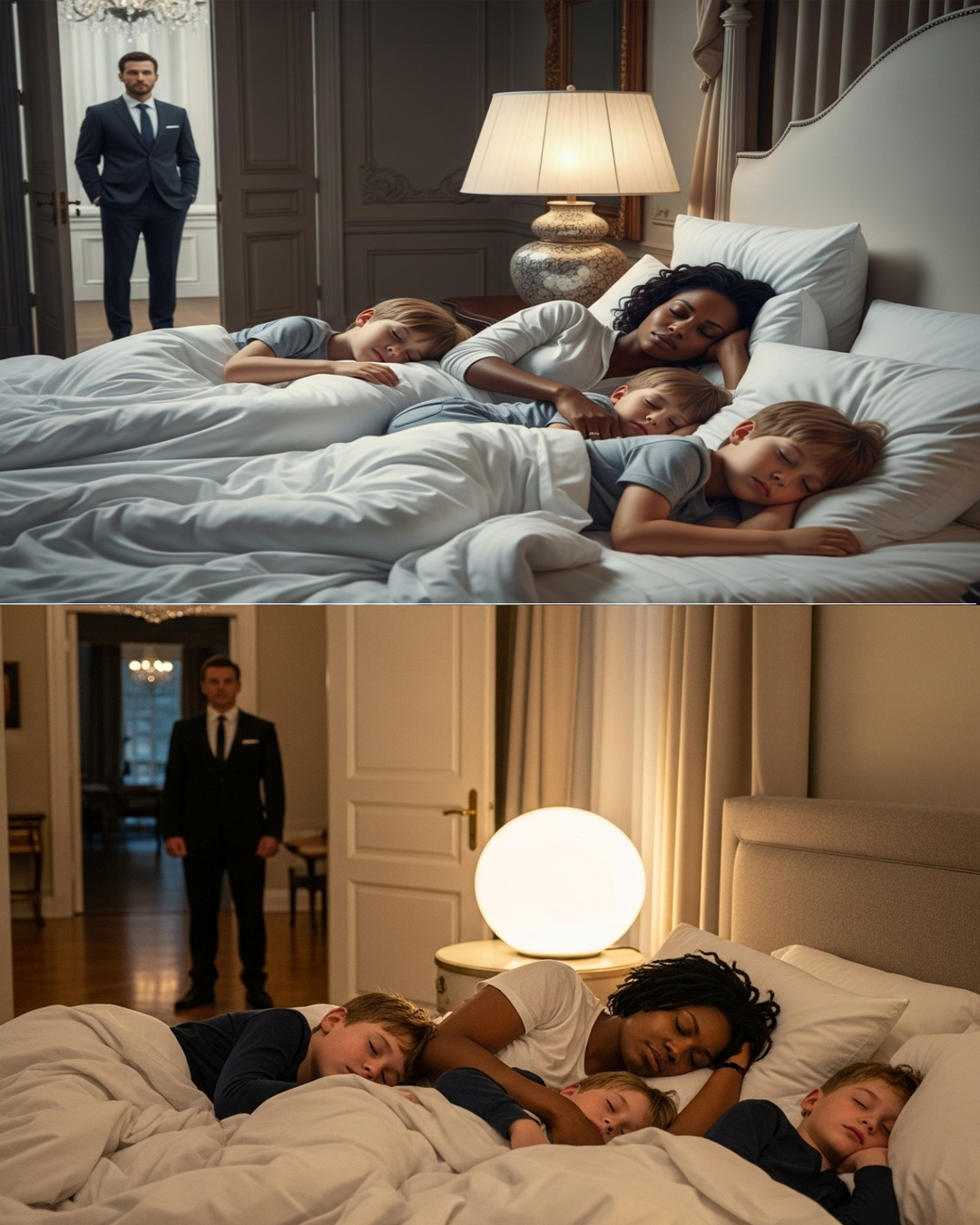 James peeked into the bedroom, his jaw tightening in disbelief. There she was, lying beside his sons, all three nestled against her as if they had known her their entire lives. Their little chests rose and fell in sync with her calm breathing.