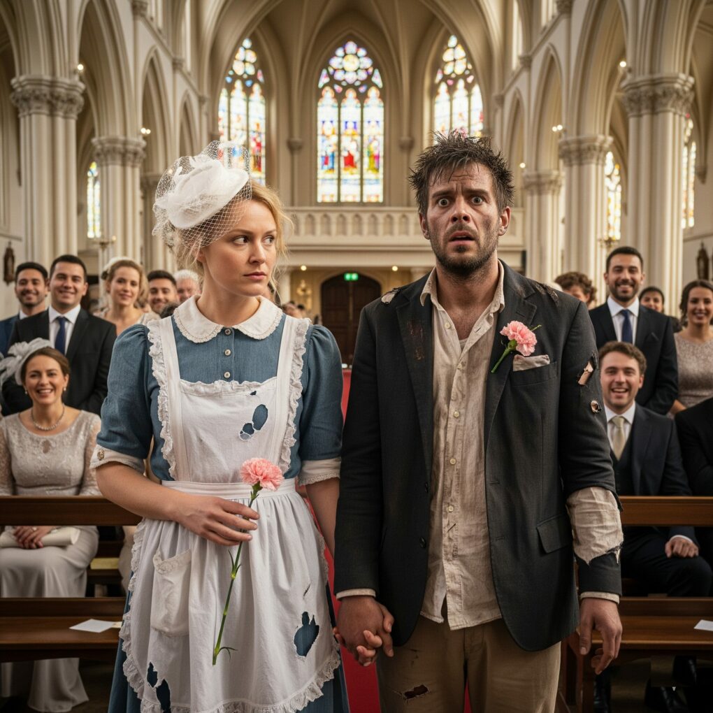 Beside her stood James Carter, her groom, his jacket frayed, his shirt torn at the cuffs. He looked out of place among silk ties and glittering gowns. The congregation chuckled, some hiding their smirks, others not bothering.