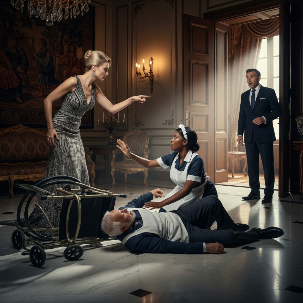 The sight that greeted him was shocking: his father sprawled on the marble floor, Maya hovering over him, and Elaine standing nearby, clutching her chest dramatically.