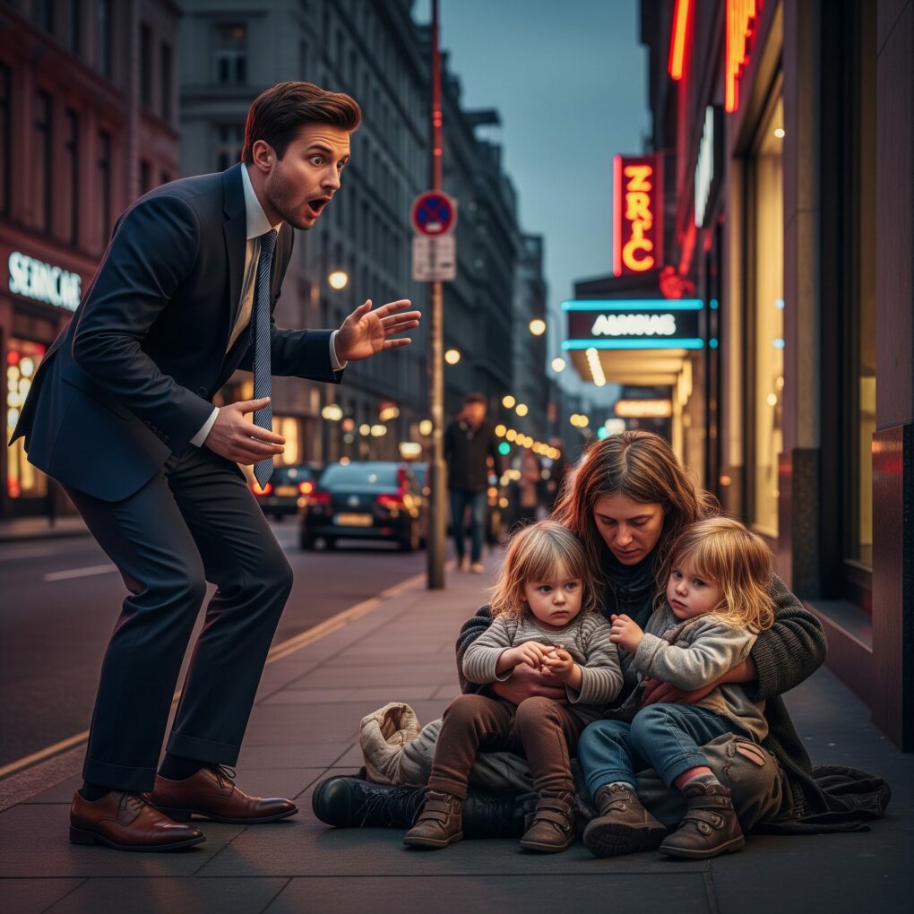 As he crossed the busy street toward his favorite restaurant, a small figure on the sidewalk caught his attention. A woman sat on the cold pavement, her clothes worn thin, her hair unkempt. Beside her were two little girls, no older than four, clinging to her arms. A paper cup sat in front of them with only a few coins.
