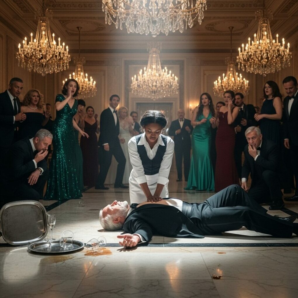 The glittering room, moments ago indifferent, now stared at the Black waitress who had just saved a billionaire’s life.