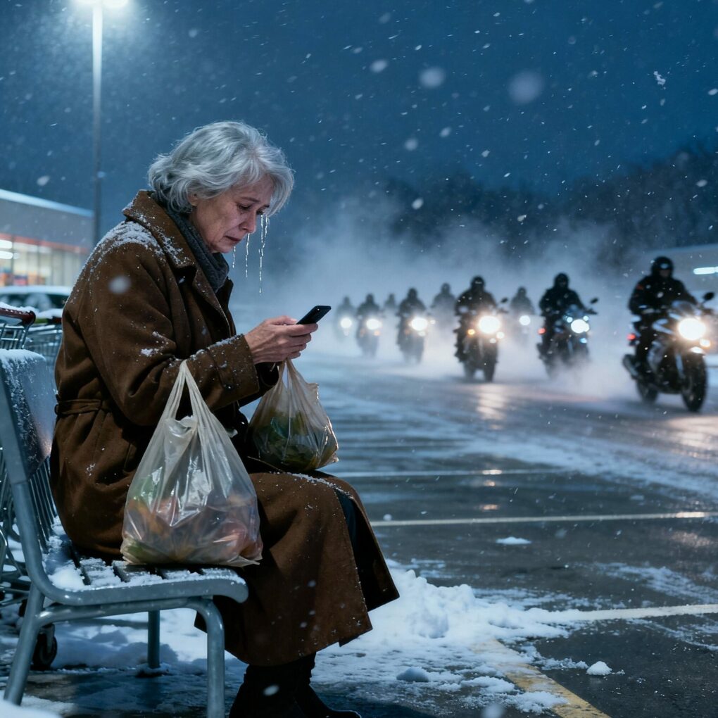 The winter wind howled through the parking lot of Henderson’s Grocery, lifting bits of snow from the asphalt and biting at Margaret Carter’s wrinkled cheeks. She sat on a cold metal bench, clutching two grocery bags filled with bread, milk, and canned soup. Her old coat did little to fight the chill seeping into her bones.