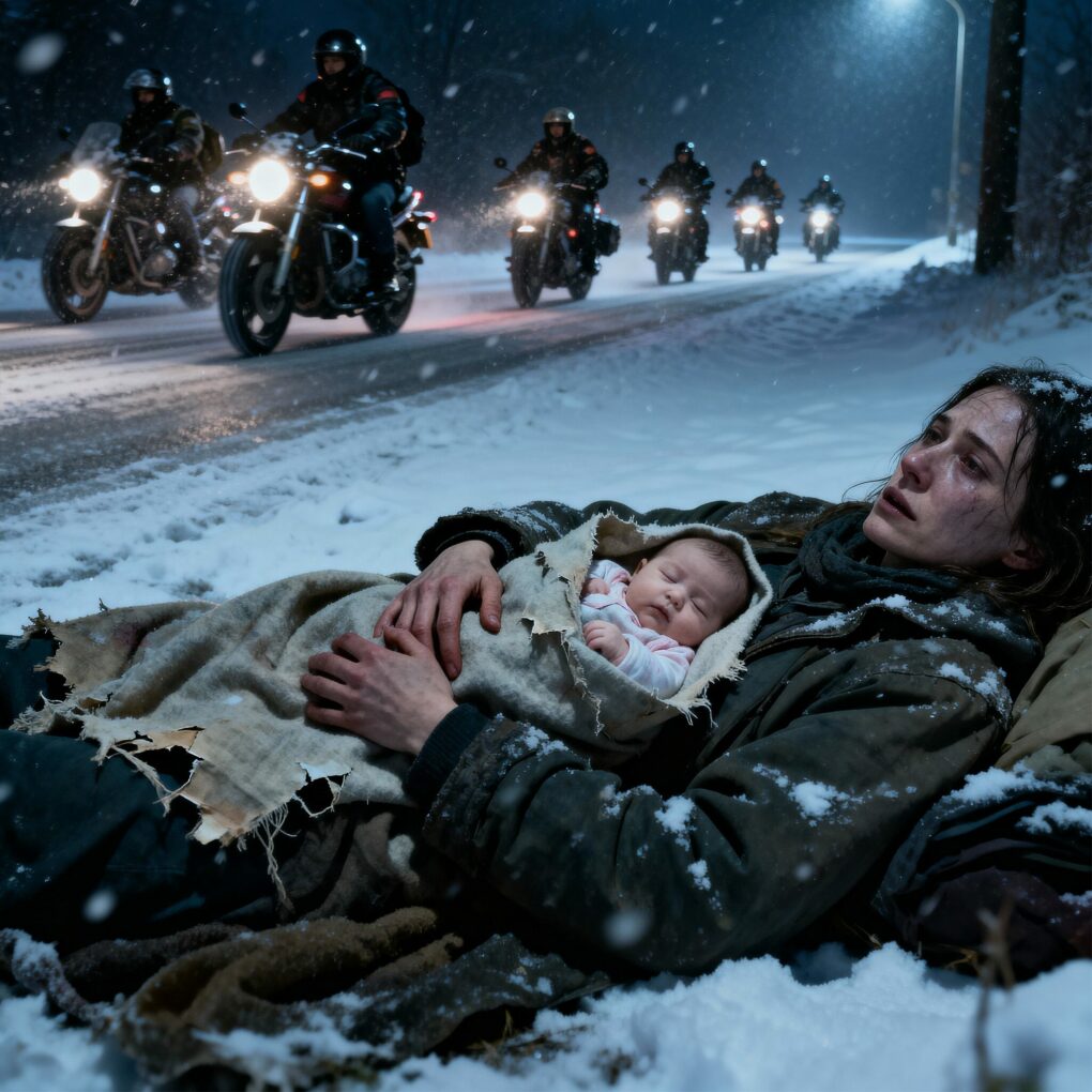 The bikers braked hard, tires skidding on the icy road. One of them—a woman named Mia Lopez—ran forward and gasped. “Oh my God, Jack! It’s a woman—and a baby!”