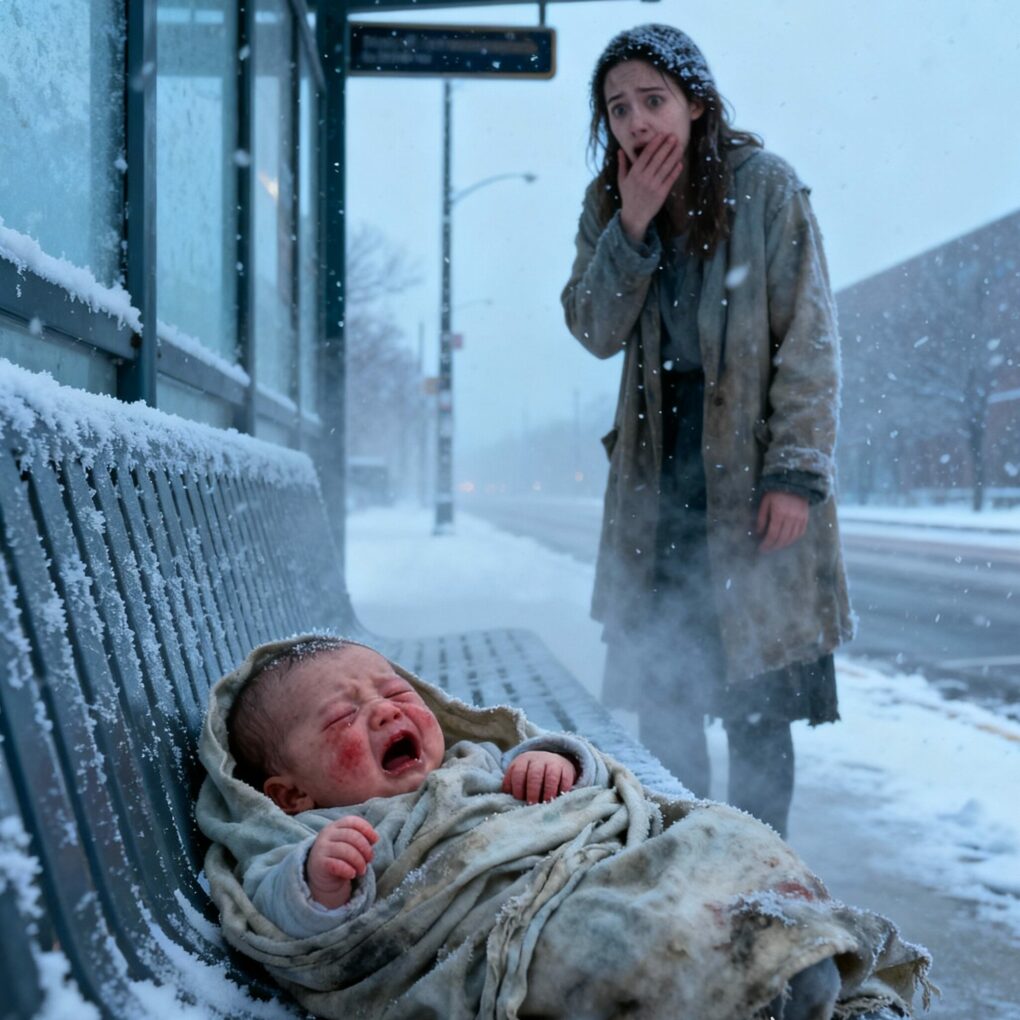So faint I almost thought I imagined it. But there it was again—a thin, weak cry full of fear and pain. I followed the sound to a bus stop, and what I saw nearly stopped my heart: a tiny newborn baby wrapped in dirty, thin blankets, shivering violently on a cold metal bench.