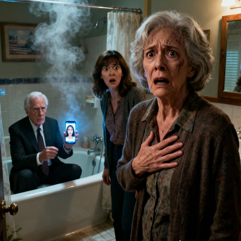 For the next hour, she listened to the running water and faint murmurs. At four, her hands shaking, she picked up a kitchen knife and forced it into the lock. The metal snapped with a loud clang. The door burst open. And there he was—Walter, fully dressed, sitting beside the tub, phone in hand. On the glowing screen appeared a woman’s face. Her smile froze Alice’s blood. It was Diane, her younger sister—the same sister she had mourned for twenty years, believing she had vanished somewhere in Alaska.