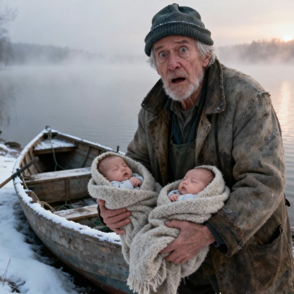 One January morning, as dawn broke over the frozen lake, James walked to his old wooden boat that he used as a storage shed. When he opened the door, he froze. Inside, between ropes and buckets, were two small bundles wrapped in wool blankets. At first, he thought someone had left supplies there—but then one of the bundles moved. A soft whimper cut through the silence. Inside was a baby girl, her cheeks red from the cold. Beside her lay a baby boy, eyes wide open, breathing weakly. There was no note, no footprints in the snow, no sign of who had left them.