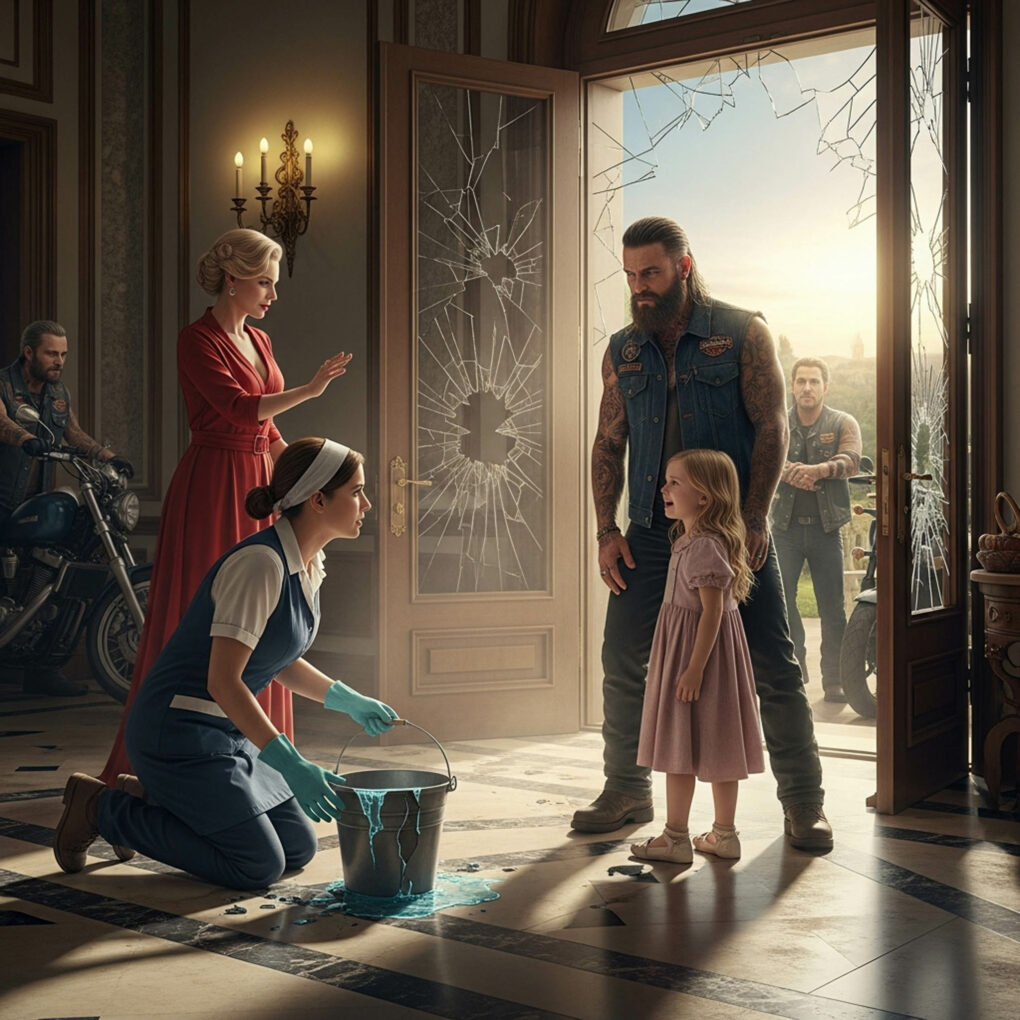 The silence that followed was sharp enough to cut glass. Veronica froze mid-motion, her hand still raised. Richard stood behind her, torn between arrogance and fear. The bikers fanned out, their boots echoing against the marble, a human wall between Sarah and her abuser.