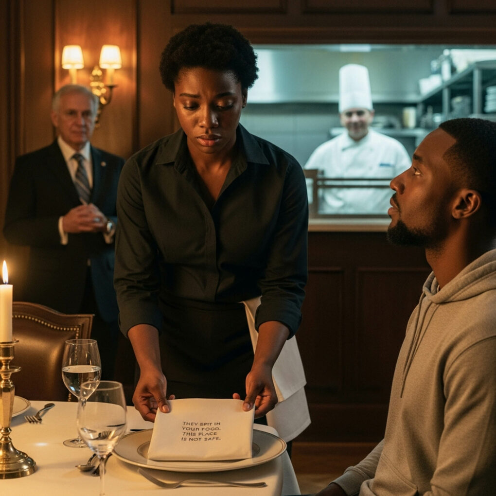 Then came Naomi Brooks — the only Black waitress. Her smile was polite but weary, her movements precise. Malcolm noticed the tremor in her voice as she took his order for the Presidential Prime, a steak meant for senators, not men in hoodies.