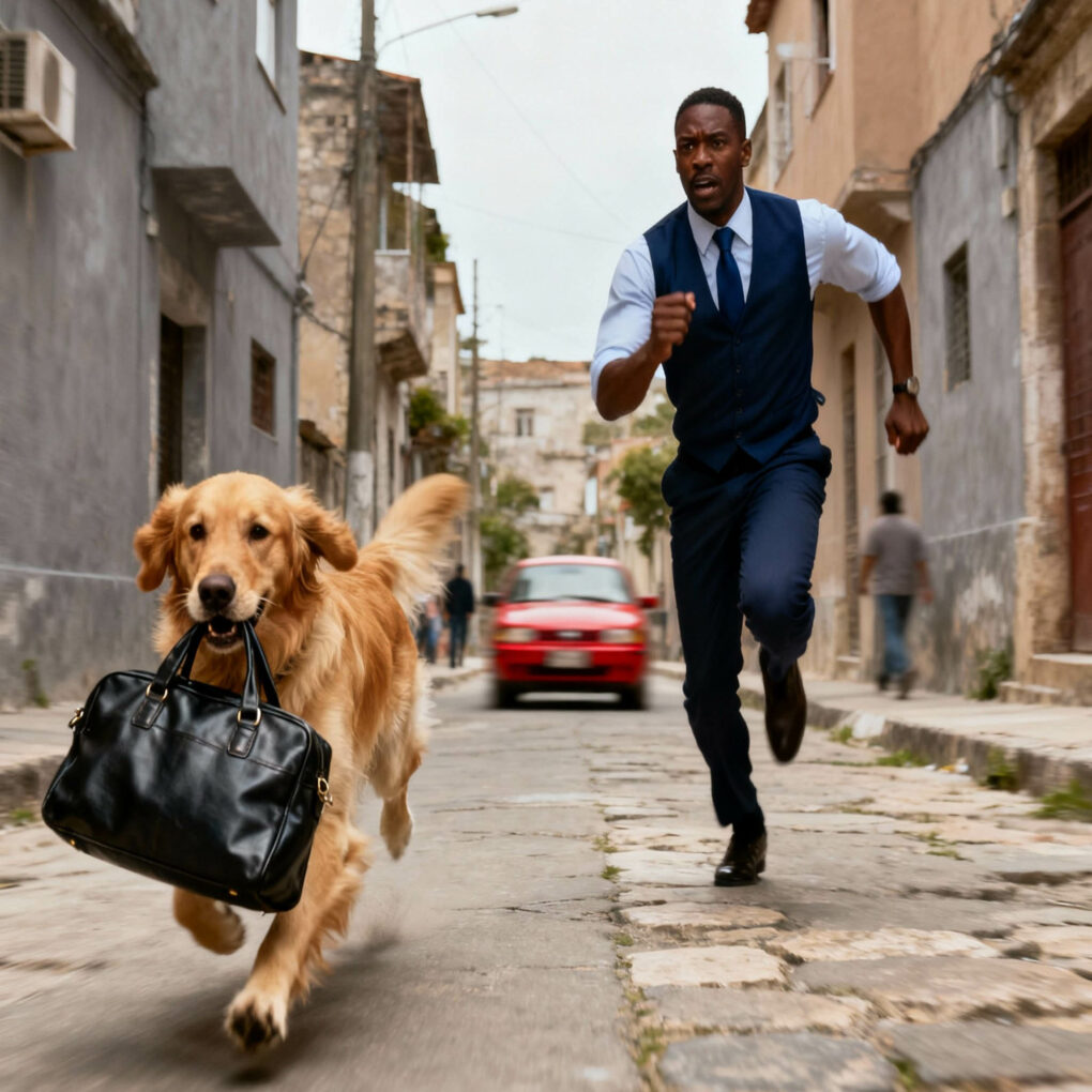 Ignoring the puzzled stares of his guards, he ran. The pavement burned under his shoes; horns blared as he crossed traffic. The dog darted through alleys and market stalls, always just a few steps ahead. Something about the chase — the desperation of the animal — made David keep going even when he lost sight of the briefcase.